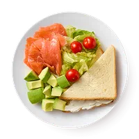 Форель радужная, соль морская, соль, экстракт розмарина, салатный лист айсберг, авокадо, хлеб (мука пшеничная хлебопекарная высшего сорта, вода, отруби пшеничные, жир растительный, сахар, улучшитель хлебопекарный (эмульгатор (моно- и диглицериды жирных кислот), консервант – пропионат кальция, мука пшеничная хлебопекарная, мука соевая, ферменты, антиокислитель – кислота аскорбиновая), клейковина пшеничная сухая, дрожжи), сыр творожный (творог (молоко, сливки, бактериальная закваска молочнокислых микроорганизмов, молокосвёртывающий фермент микробного происхождения), сыворотка молочная сухая, соль, молочный белок, регулятор кислотности лимонная кислота, вода питьевая), томаты черри.