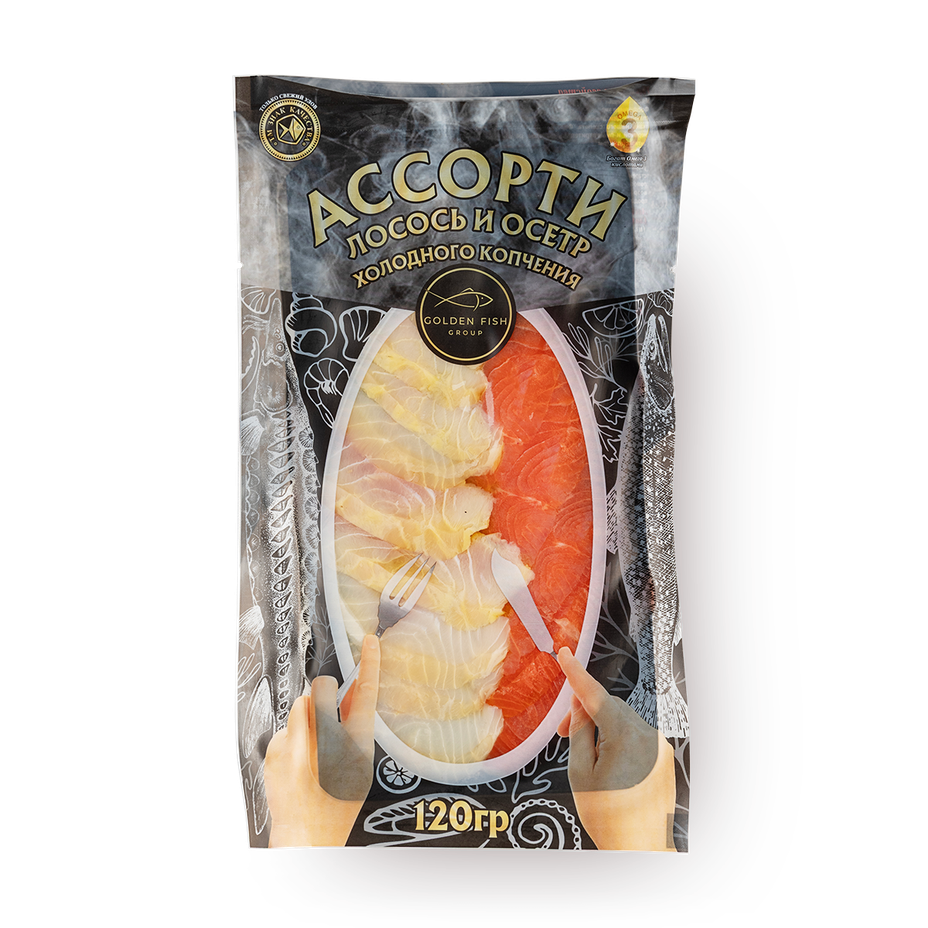 Филе лосося и осетра с нежным вкусом, которое можно добавить в салат или подать в качестве закуски. В упаковке — два вида рыбы, которые сочетаются с лимоном и зеленью.