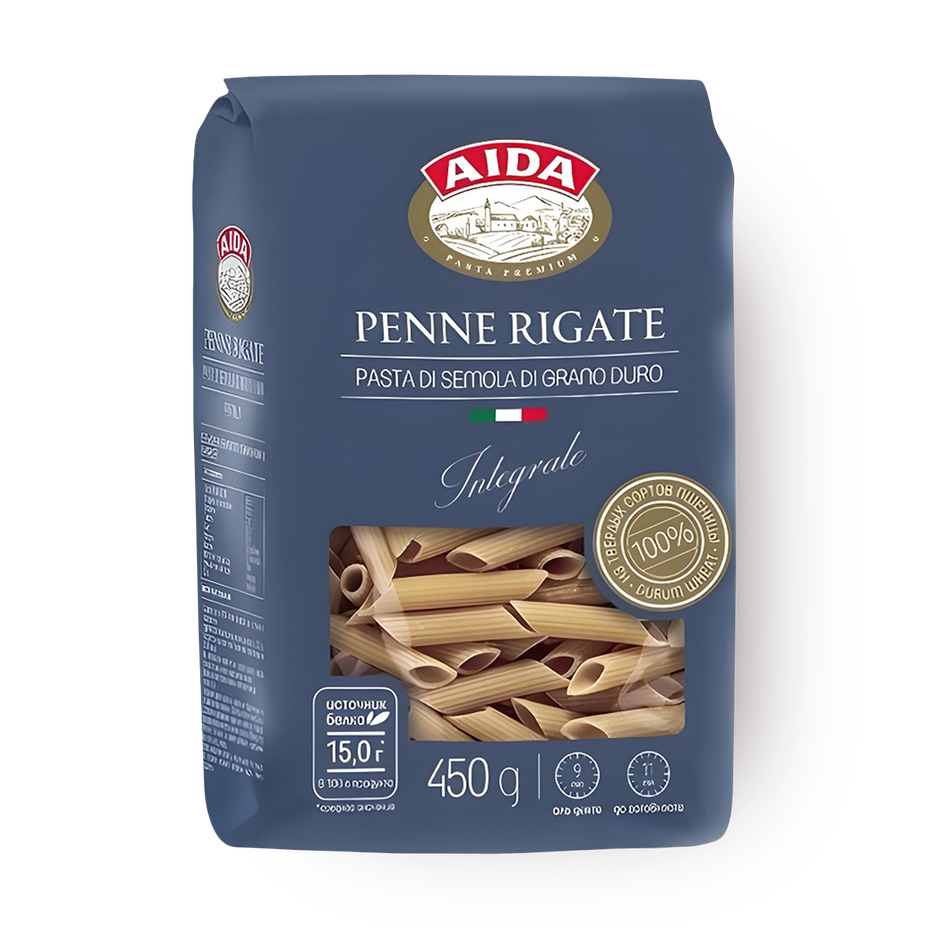 Макаронные изделия Перо цельнозерновые Aida Penne Rigate