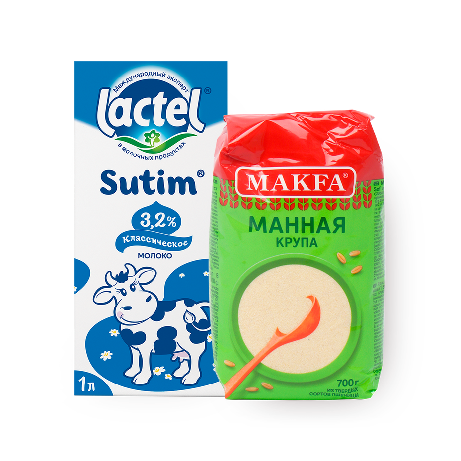 Крупа манная Makfa 700г + Молоко 3.2% Lactel Sutim ультрапастеризованное 1л