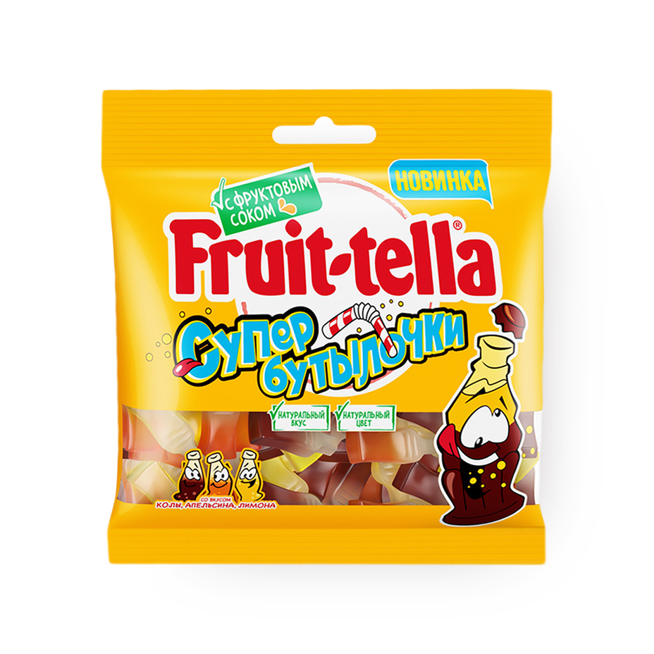 Мармелад в форме бутылочек с разными вкусами, который удобно взять с собой. В составе есть концентрированный яблочный сок и натуральные ароматизаторы.