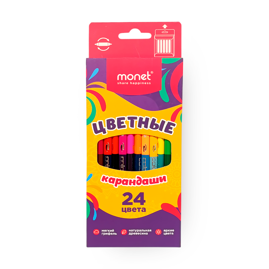 Эти карандаши с двумя рабочими концами подходят для рисования и раскрашивания. В наборе 24 цвета, которые можно использовать для разных творческих задач.