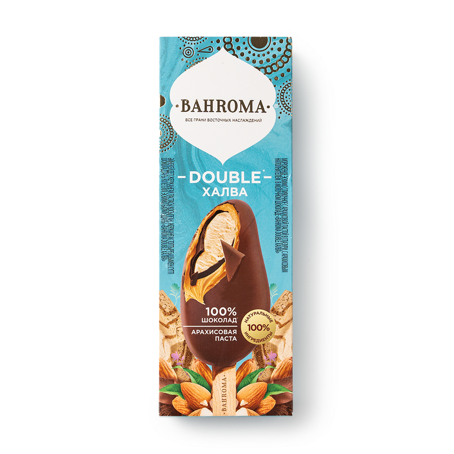 Это мороженое с халвой покрыто слоем молочного шоколада. Внутри есть кусочки арахиса, которые придают ему хруст.