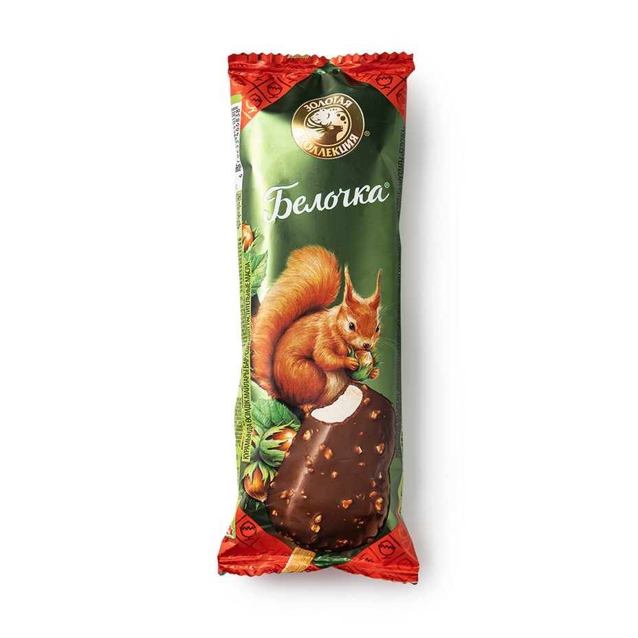 Мороженое (молоко цельное, сахар, молоко цельное сгущённое с сахаром (молоко цельное, сахар: сахароза, лактоза), патока крахмальная, масло сливочное, молоко сухое обезжиренное, вода питьевая, эмульгатор моно- и диглицериды жирных кислот, стабилизаторы (камедь рожкового дерева, гуаровая камедь, каррагинан), основа «Лесной орех» (фундук жареный тёртый, растительное масло, ароматизатор, эмульгатор соевый лецитин), ароматизатор); глазурь (растительное масло, сахар, какао-порошок, эмульгатор лецитин из подсолнечника, эмульгатор лецитин соевый, ароматизатор); ядра арахиса дроблённого.