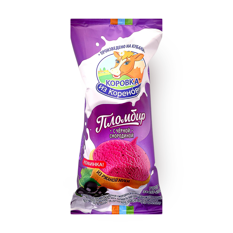 Мороженое Пломбир «Коровка из Кореновки» чёрная смородина в вафельном стакане