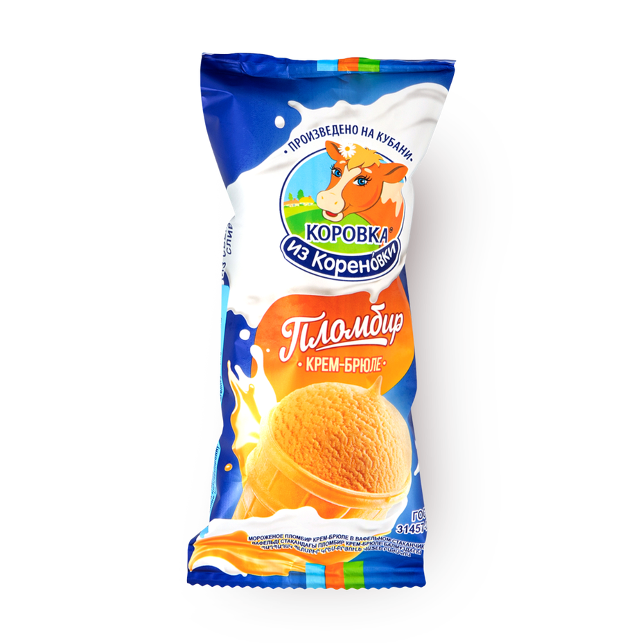 Мороженое пломбир крем-брюле «Коровка из Кореновки» в вафельном стаканчике