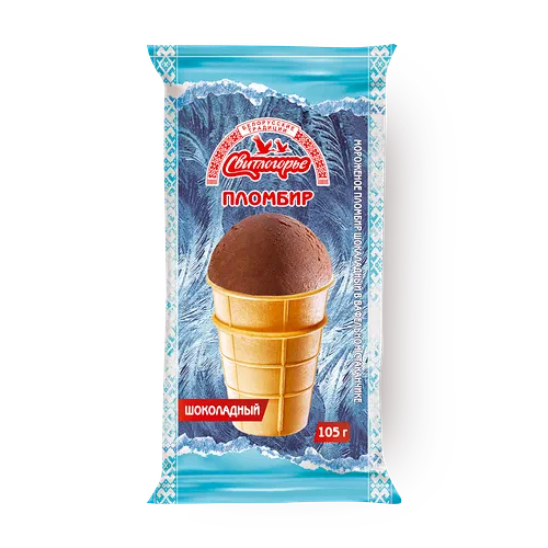 Мороженое пломбир шоколадное «Свитлогорье» в вафельном стаканчике