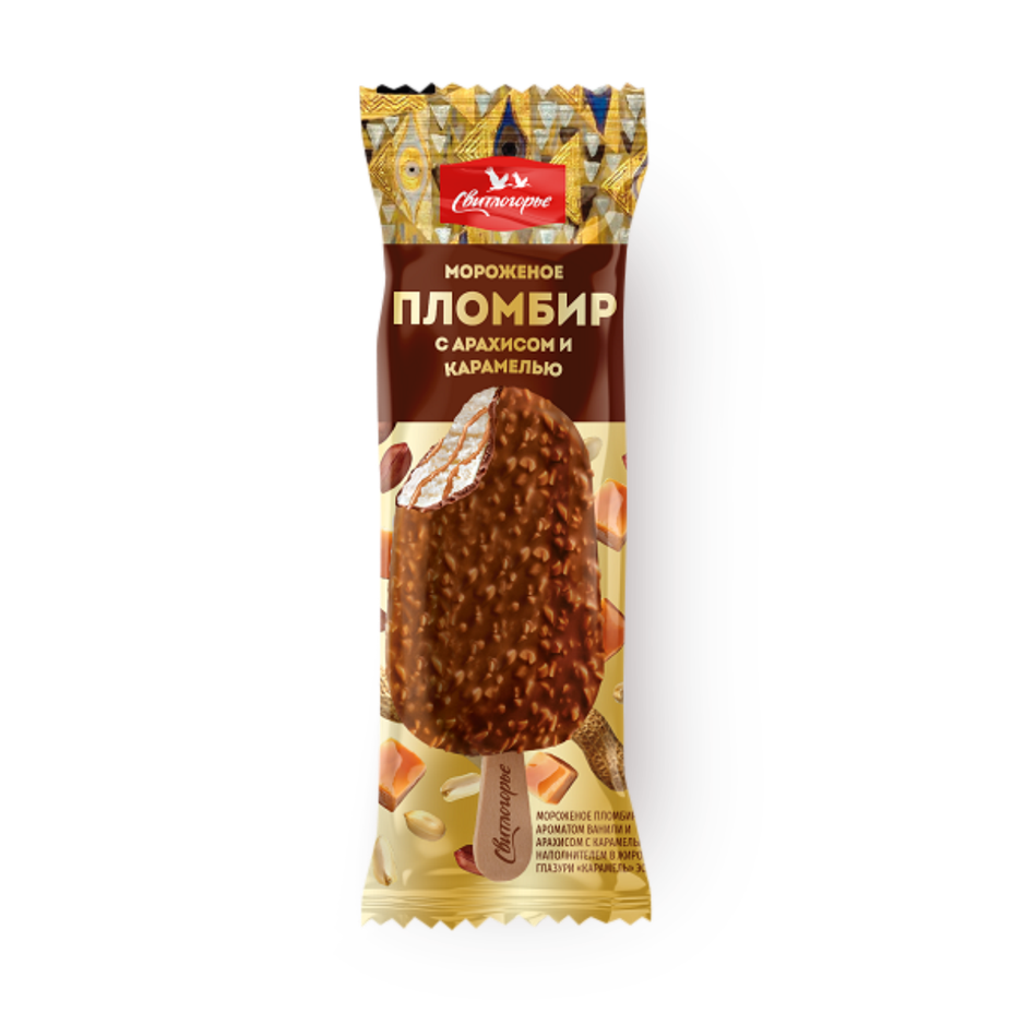 Мороженое пломбир «Свитлогорье» с арахисом и карамелью в глазури эскимо