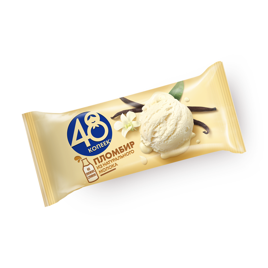 Этот пломбир приготовили из цельного молока и сливок с добавлением ванили. Его можно есть просто так или с фруктами.