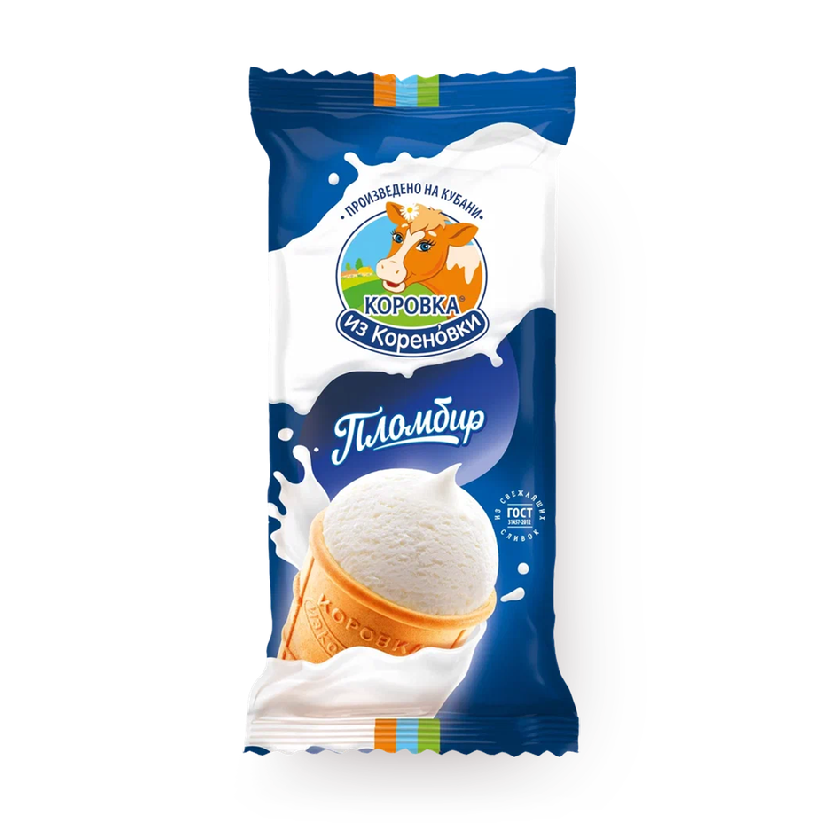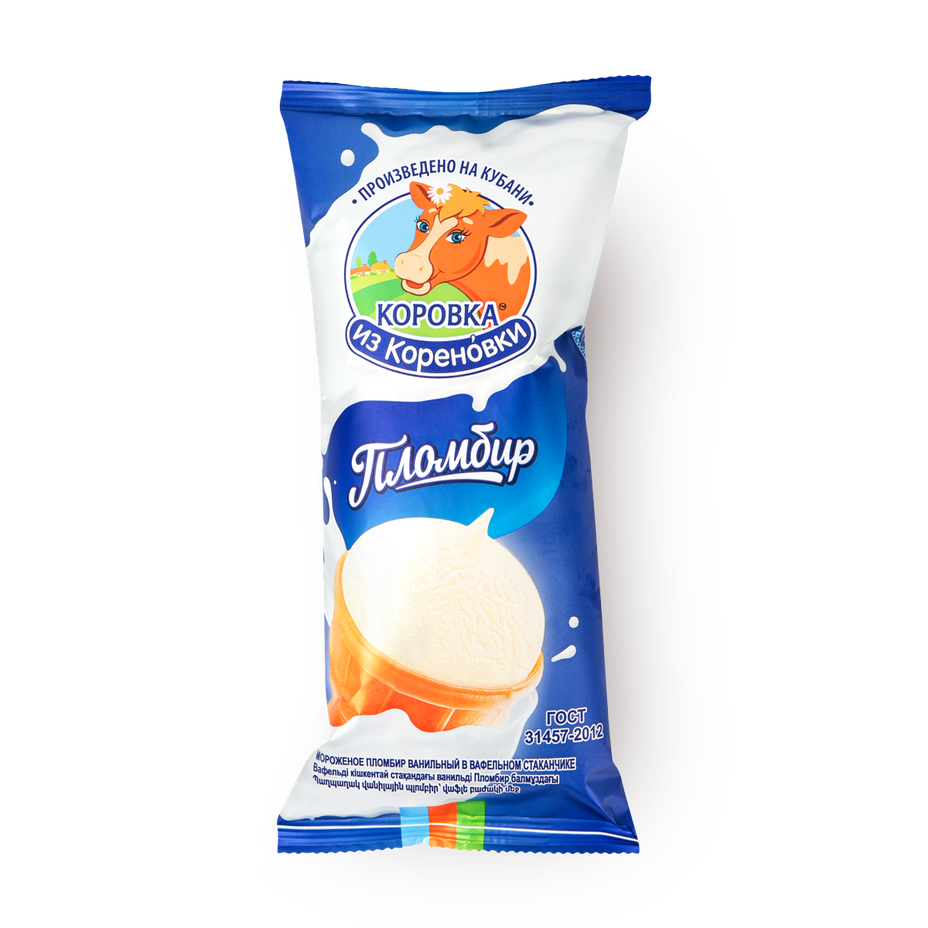 Мороженое пломбир ванильное «Коровка из Кореновки» в вафельном стаканчике