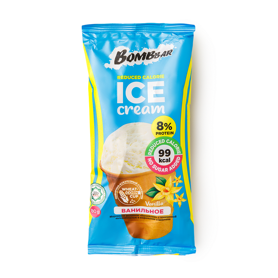 Мороженое протеиновое ванильное Bombbar без сахара в вафельном стаканчике