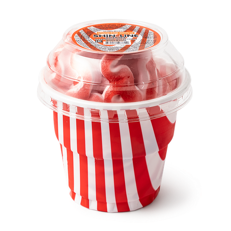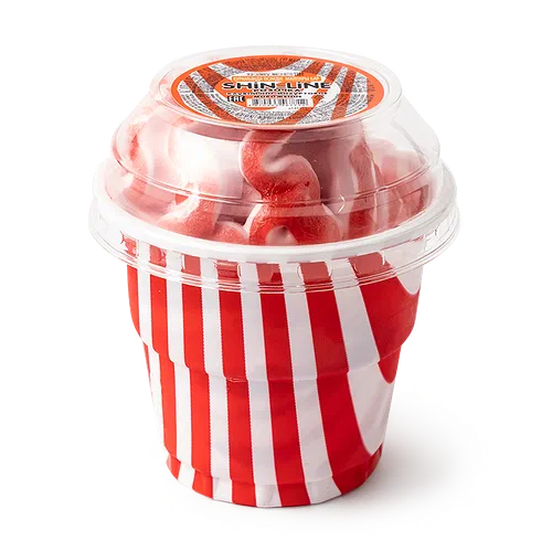 Это мороженое в стаканчике с клубничным наполнителем и глазурью. Его можно есть сразу или подождать, пока немного подтает.