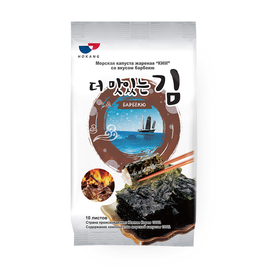 Эта хрустящая морская капуста приготовлена с ароматом барбекю. В ней сочетаются кунжутное масло и лёгкая солёность.