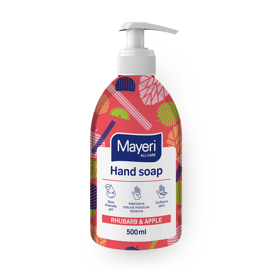 Это жидкое мыло с ароматом ревеня и яблока. Оно мягко очищает кожу и оставляет приятное послевкусие.