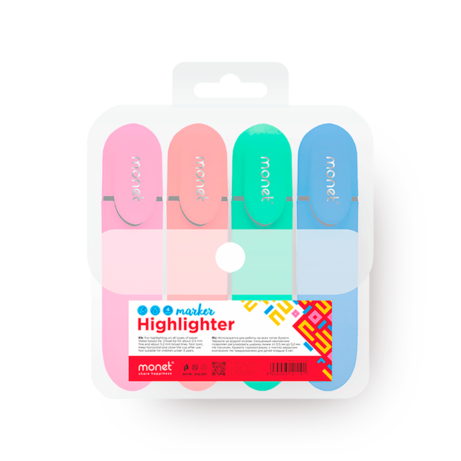 В наборе четыре текстовыделителя с неоновыми оттенками. Они подчёркивают важное и помогают ориентироваться в записях.