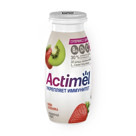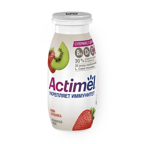 Этот питьевой йогурт сочетает вкус киви и клубники. В нём есть лактобактерии, которые могут поддержать пищеварение.