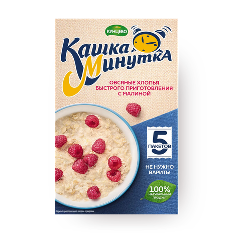 Эти овсяные хлопья с малиной можно залить кипятком и через минуту получить готовый завтрак. В составе есть сушёные ягоды, которые придают сладкий вкус.