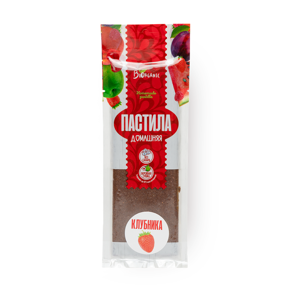 Эта пастила сделана из печёного яблока и клубники. Её можно взять с собой на прогулку или добавить в чай.