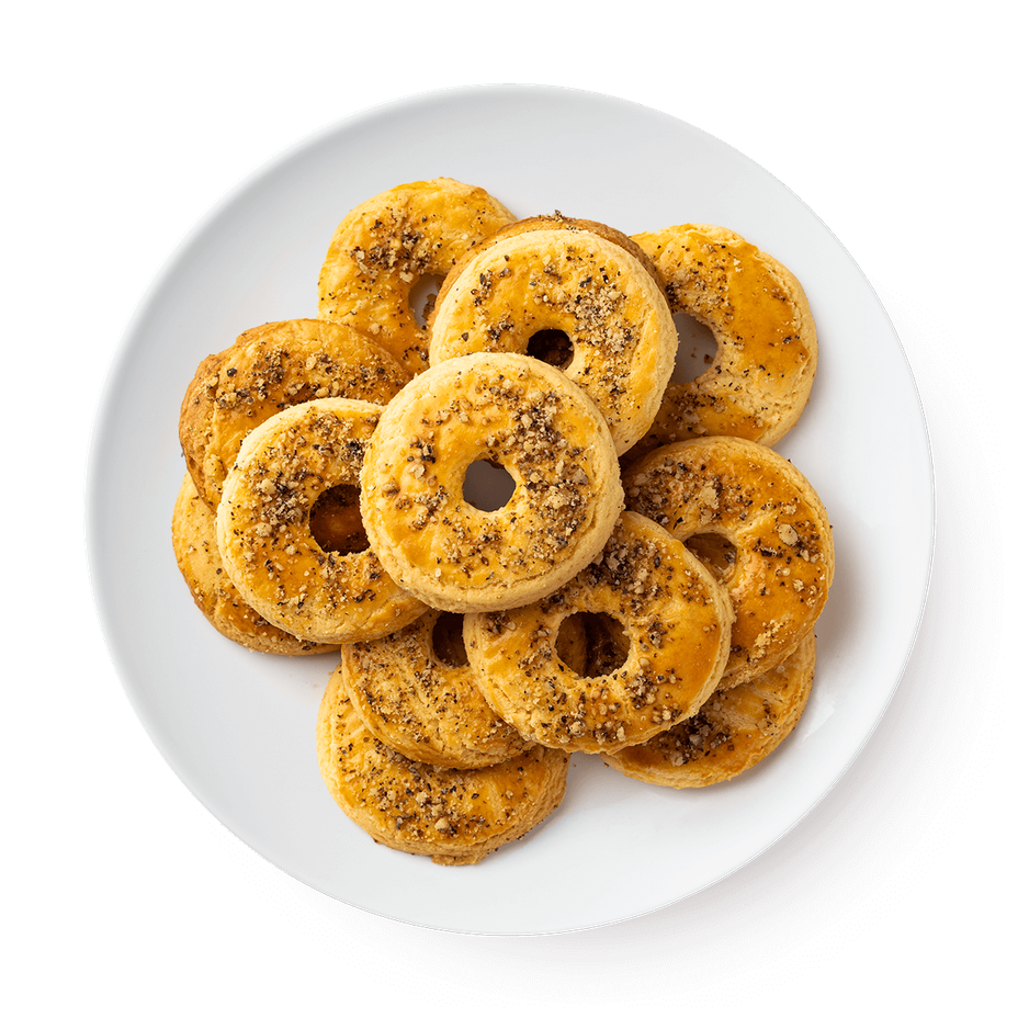 Это печенье в форме колечек с кусочками грецкого ореха. Его можно взять с собой в дорогу или подать к чаю.