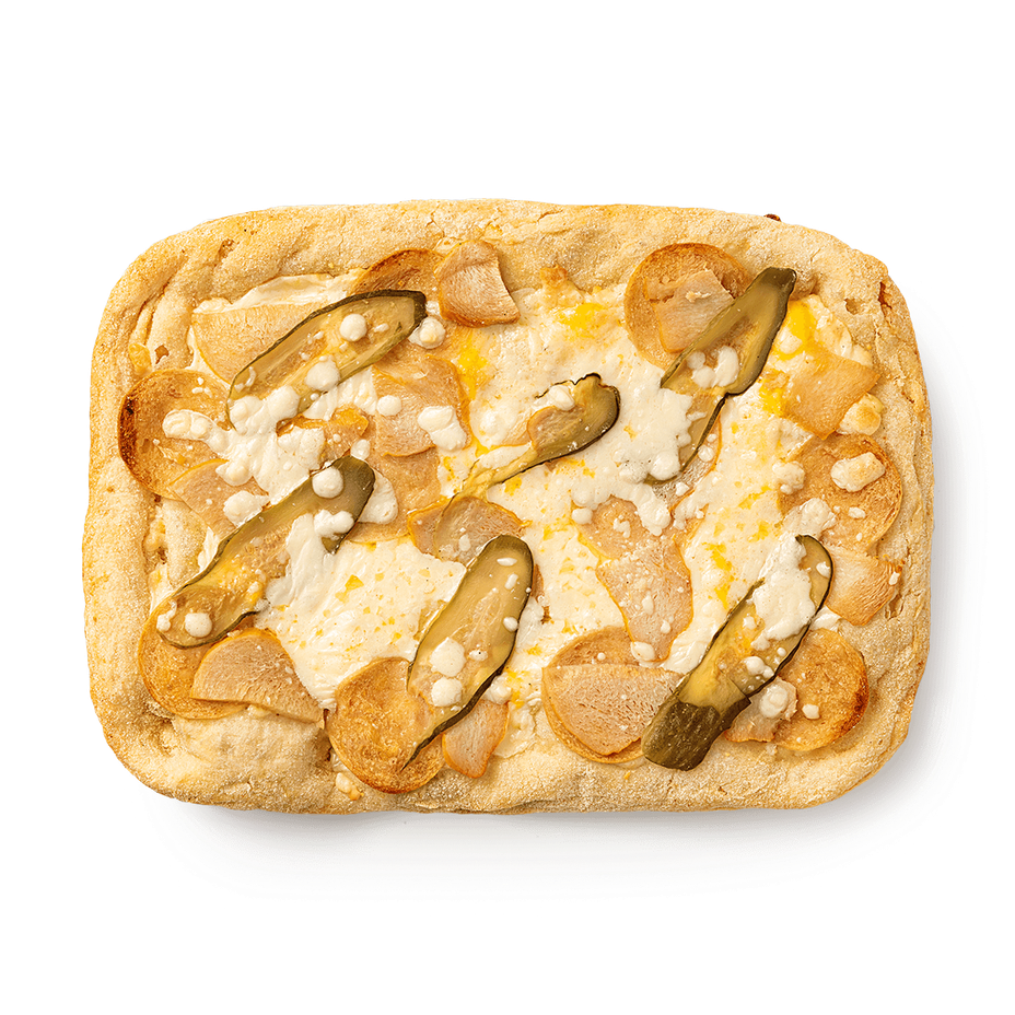 Эта пицца сочетает нежное куриное мясо с чесночным соусом ранч и маринованными огурцами. Её можно разогреть в духовке или съесть сразу.