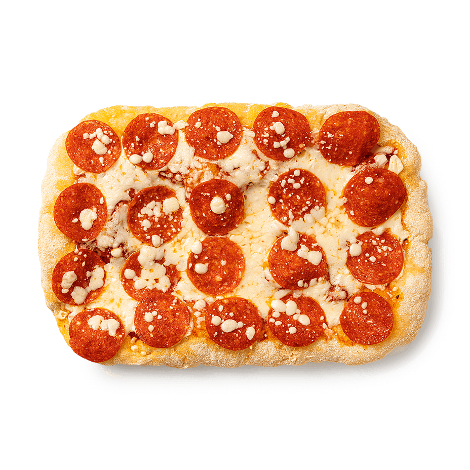 Эта пицца с двойной порцией пепперони и томатным соусом на тонком тесте. Можно разогреть в духовке или съесть сразу.