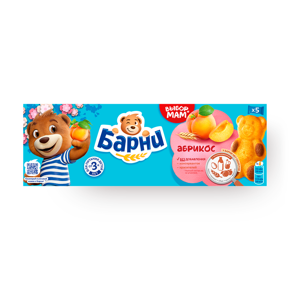 Пирожное бисквитное Барни с абрикосом