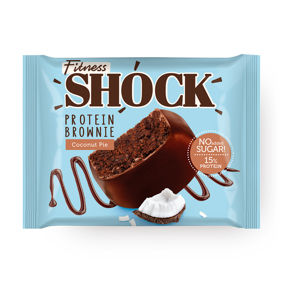 Пирожное протеиновое Fitness Shock брауни кокосовый пирог в глазури