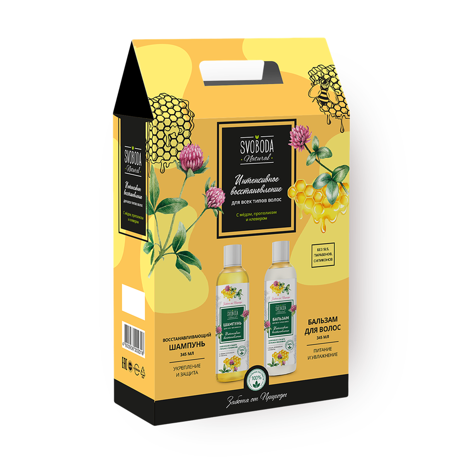 Этот набор поможет восстановить волосы после повреждений. В него входит шампунь, который ухаживает за ослабленными прядями.