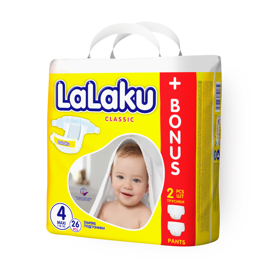 Эти подгузники подходят детям весом от 7 до 18 кг. В упаковке 26 штук, которые удобно брать с собой на прогулку.