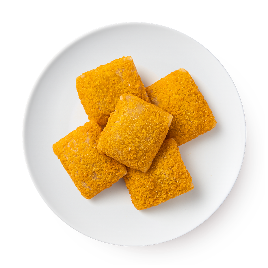 Вода, пшеничная мука, сыр Гауда (23%, происхождение: ЕС), панировочные сухари (пшеничная мука, вода, дрожжи, соль, красители E160b(ii), E160c, E100), растительные масла (пальмовое, рапсовое), крахмал, соль, сливочное масло, эмульгирующие соли: E452, глюкозный сироп., загуститель: Е461, белый сахарный сироп (сахар инвертированный сахарный сироп), модифицированный крахмал, декстроза, эмульгатор: Е471, стабилизатор: Е466, кислота: Е330, пшеничный белок и глютен.
