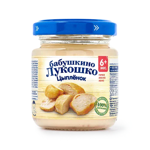Пюре из мяса цыплят, в котором сочетаются рисовая мука и подсолнечное масло. Подходит для детей с 6 месяцев, готово к употреблению.