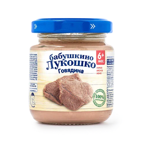 Говяжье пюре с рисовой мукой и подсолнечным маслом подходит для детей с 6 месяцев. Оно готово к употреблению и легко усваивается.