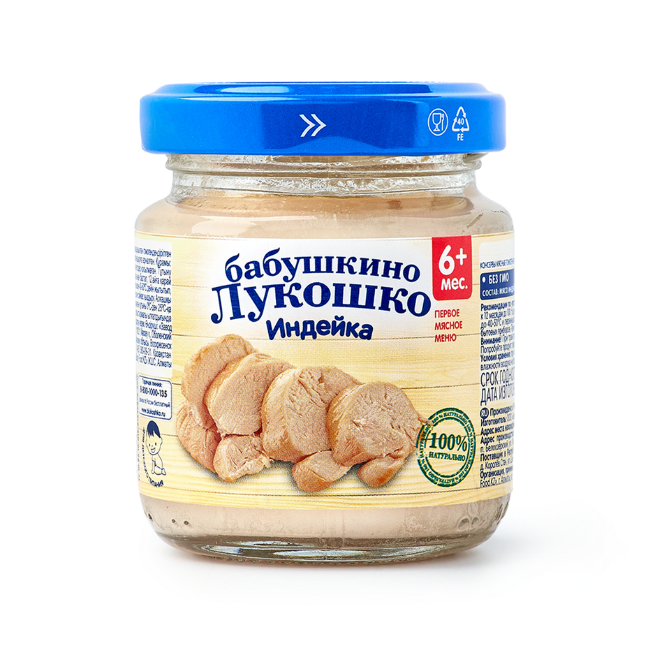 Это пюре из мяса индейки с простым составом, которое подходит для малышей с 6 месяцев. Его можно разогреть или сразу дать ребёнку.
