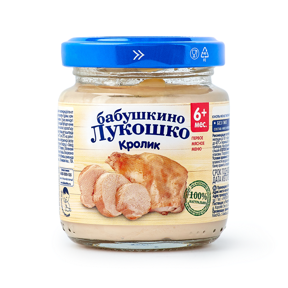 Пюре из мяса кролика с рисовой мукой подходит для малышей с 6 месяцев. Его можно есть отдельно или смешать с овощным пюре.
