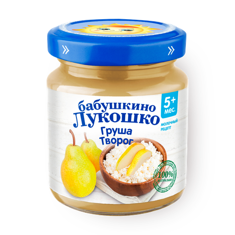 Это пюре с грушей и творогом подходит для малышей с 5 месяцев. Готово к употреблению, можно подогреть перед едой.