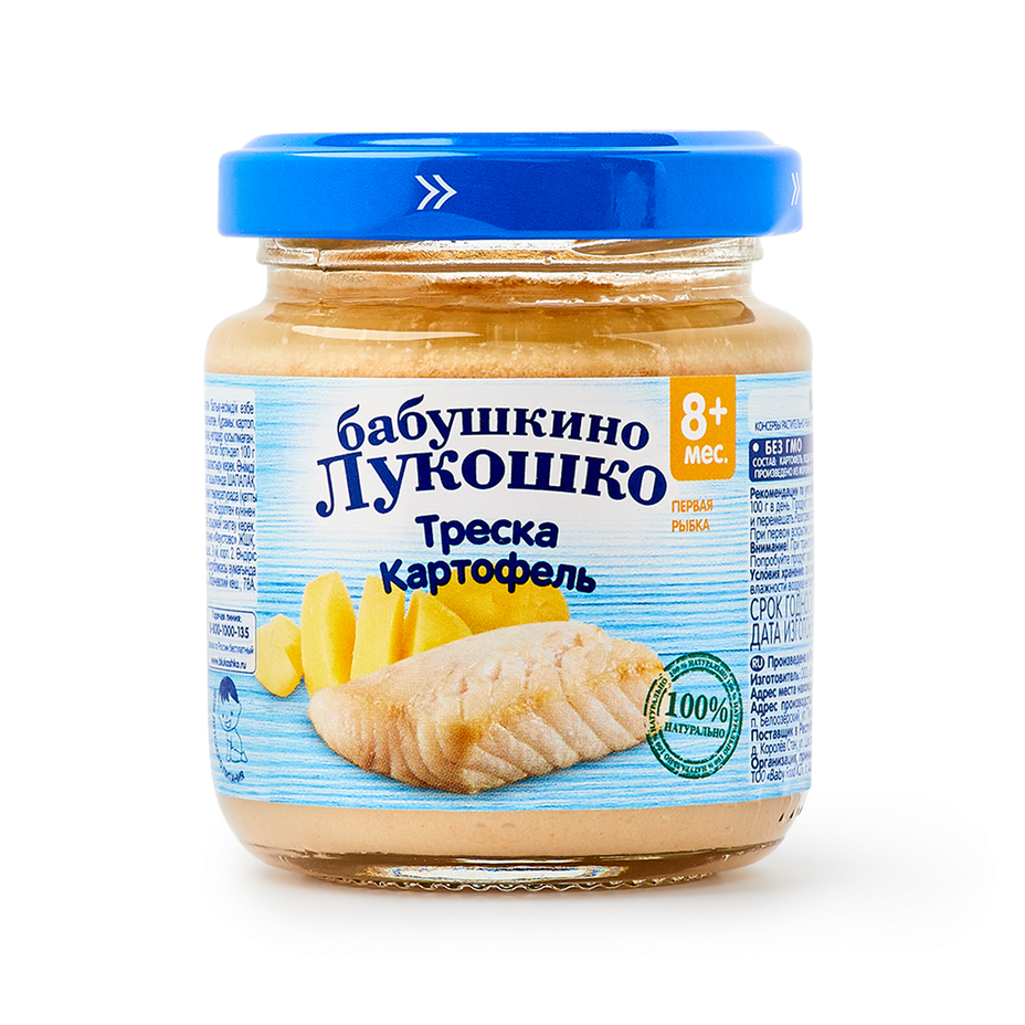 Пюре с филе трески и картофелем подходит для детей с 8 месяцев. Оно имеет плотную консистенцию и готово к употреблению.