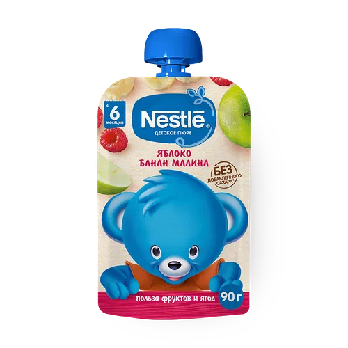 Это пюре сочетает яблоко, банан и малину, которые придают ему сладковатый вкус. Его можно давать детям с 6 месяцев или использовать в качестве дополнения к кашам.