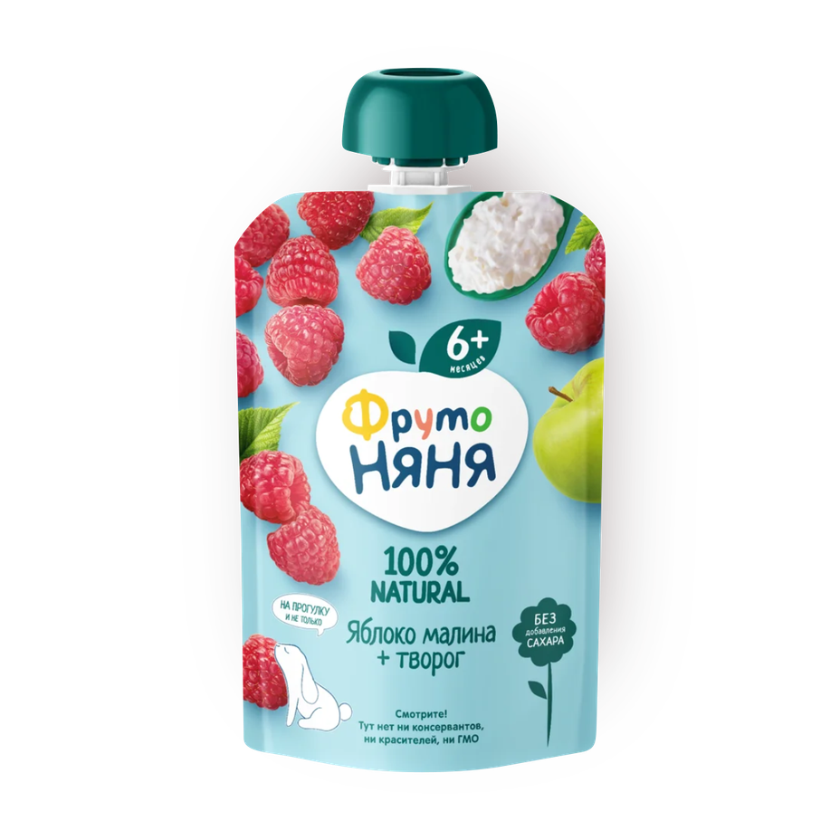 Пюре из яблок, творог, пюре из малины, сок яблочный концентрированный.