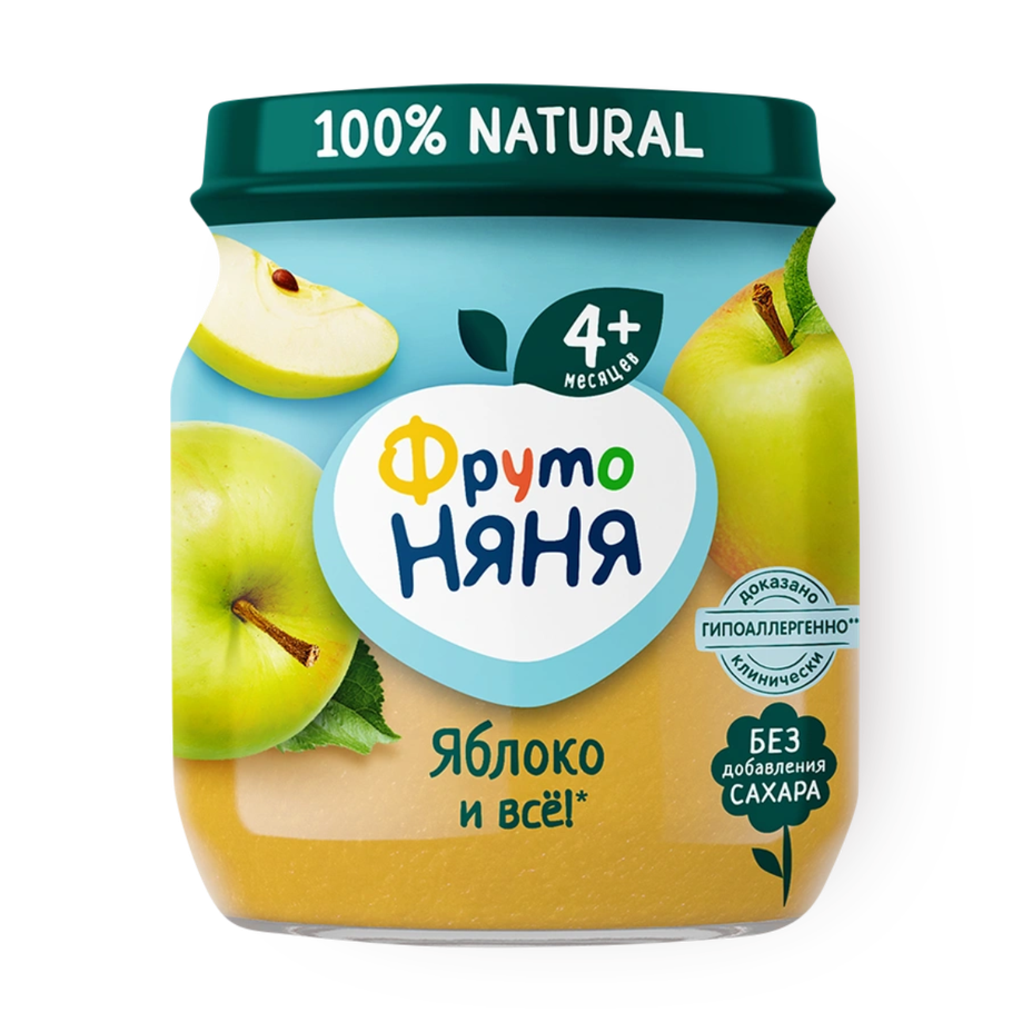 Это пюре из яблок подходит для малышей с 4 месяцев. Его можно давать сразу или подогреть в тёплой воде.