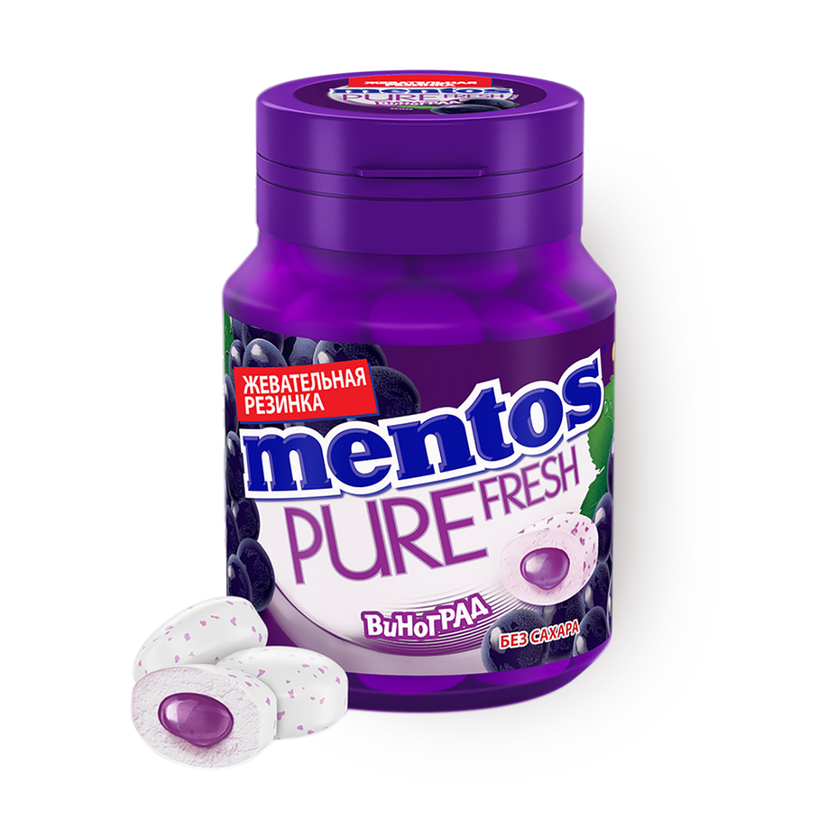 Жевательная резинка с виноградным вкусом, которая освежает дыхание. Можно взять с собой или оставить в сумке на случай, если понадобится.
