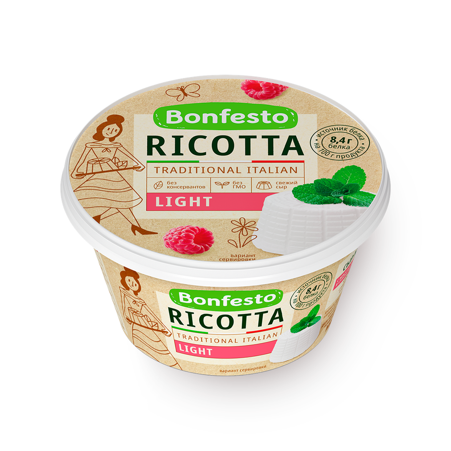 Подсырная сыворотка, молоко коровье и сливки, а также регуляторы кислотности, такие как лимонная кислота и сода пищевая.