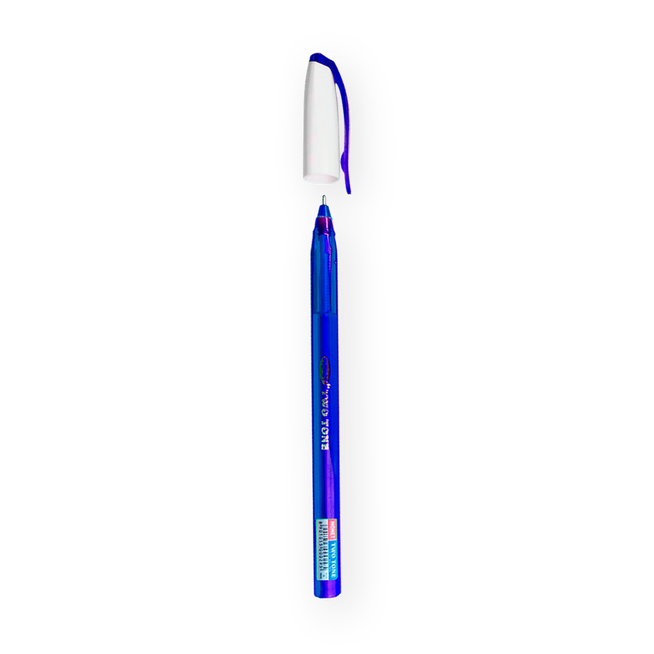 Эта шариковая ручка с синим корпусом и белым колпачком удобно лежит в руке. Её можно использовать для записей или заметок в ежедневнике.