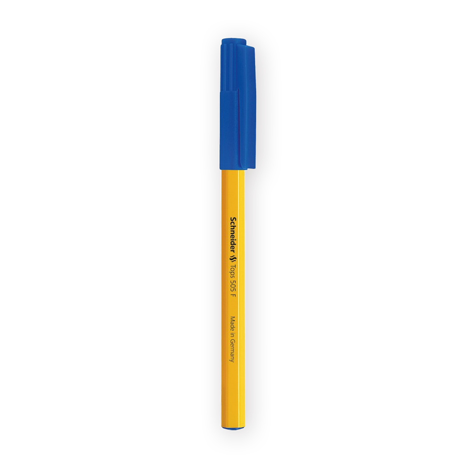 Эта ручка с синим стержнем пишет плавно и не оставляет разводов. Её удобно держать в руке благодаря прорезиненной вставке.