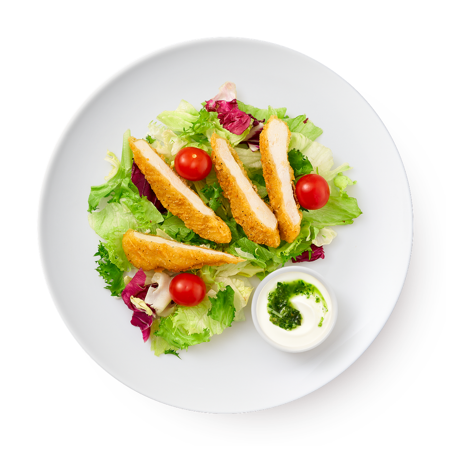 Салат овощной с цыплёнком и йогуртовой заправкой