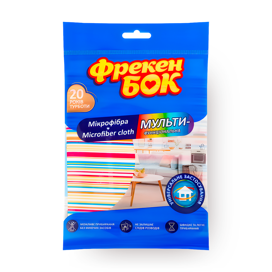 Эта салфетка из микрофибры подходит для уборки разных поверхностей. Её можно использовать многократно, что помогает экономить.