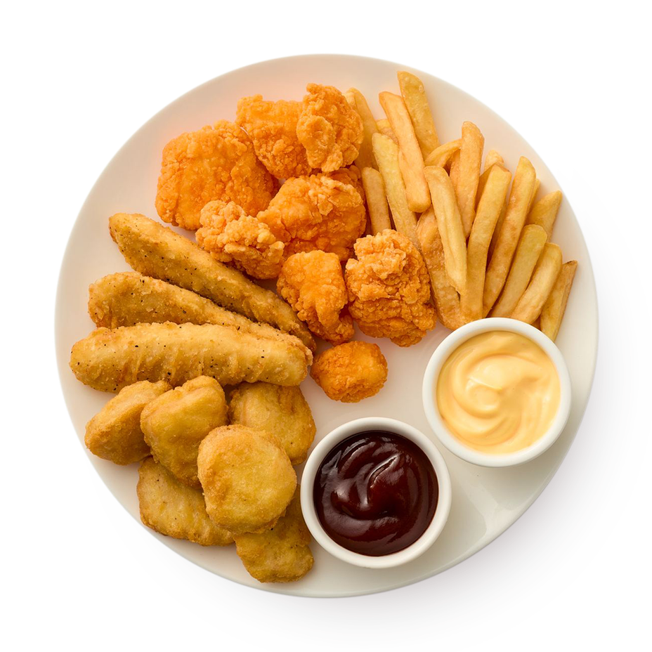 Сет Куриный попкорн, стрипсы, наггетсы и картофель фри Из Лавки