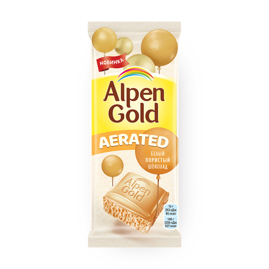 Этот белый шоколад с пузырьками воздуха внутри имеет сливочный вкус. Его можно съесть просто так или добавить в выпечку.