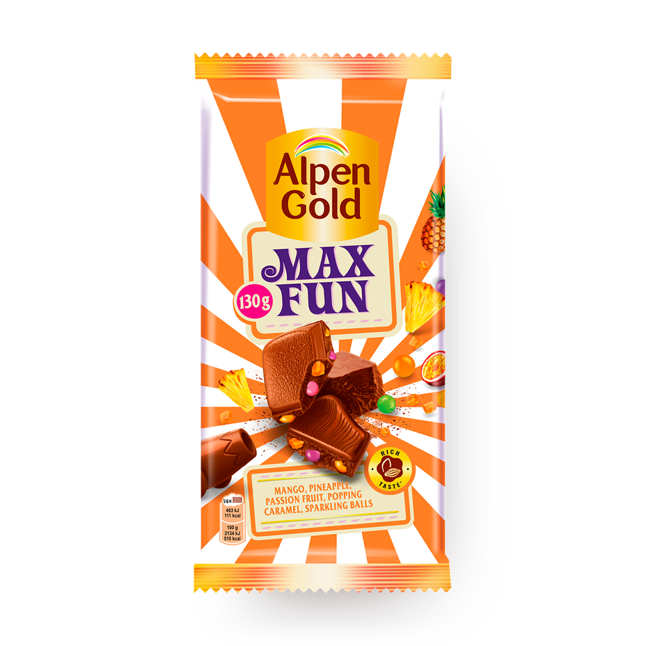 Шоколад Alpen Gold Max Fun с фруктовыми кусочками