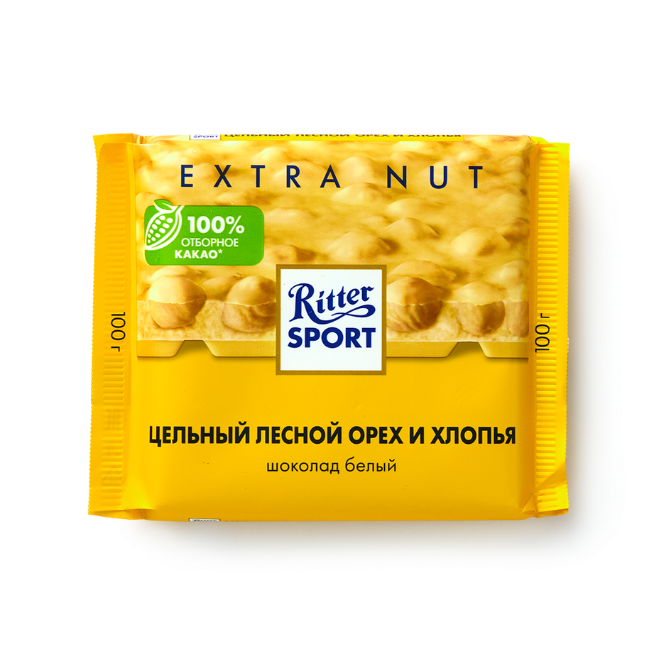 Шоколад белый Ritter Sport Extra Nut с цельным лесным орехом и хлопьями
