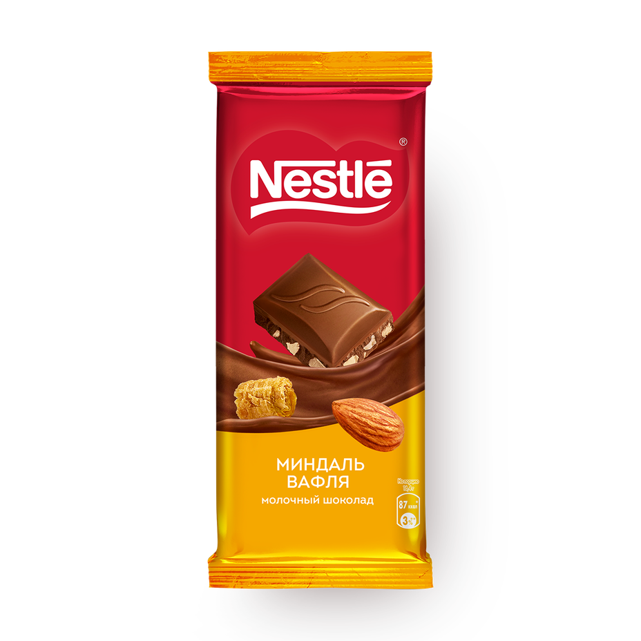 Этот шоколад сочетает молочную сладость с хрустящей вафлей и дроблёным миндалём. Его можно съесть сразу или взять с собой в дорогу.